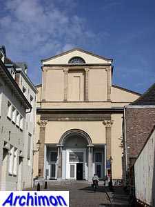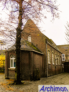 ![]() The church of the Franciscan convent and hospital Calvariënberg was built in 1710. The convent was closed in 1796 but the hospital remained. In 1847 a new extension was added to the front of the church, largely blocking the Classical facade. Location: Calvariestraat De kerk van het Franciscanessenklooster en ziekenhuis Calvariënberg werd gebouwd in 1710. Het klooster werd in 1796 gesloten maar het ziekenhuis bleef behouden. In 1847 werd een nieuwe uitbreiding toegevoegd aan de voorzijde van de kerk, waarachter de Classicistische gevel grotendeels verdween. Locatie: Calvariestraat |
