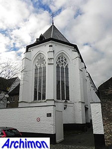 ![]() The chapel of the Capucijnenhof was built in 1885 in a then already archaic neo-Classical style as part of a monastery of the Brothers of Maastricht (Brothers FIC) who in 1911 were succeeded by Franciscan nuns. In 1992-1995 the entire complex, church included, was rebuilt into apartments. Location: Capucijnengang 3 De Capucijnenhofkapel werd in 1885 in een toen al archaïsche neoclassicistische stijl gebouwd als onderdeel van een klooster van de Fraters van Maastricht (Fraters FIC) die in 1911 werden opgevolgd door Franciscaanse nonnen. In 1992-1995 werd het gehele complex, inclusief de kerk, verbouwd tot appartementen. Locatie: Capucijnengang 3 |
