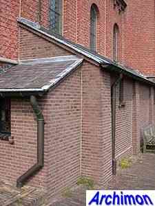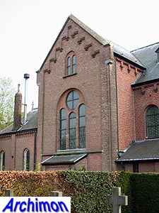 In 1809 the old church of hulsel, after having been in protestant hands for over 150 years, was restituted to the catholics of that village. Nothing remains of that church since it was demolished in 1888. That same year work began on a new church, designed by H.R. Hendriks, who had a building firm in Oss and was not a real architect. Yet, he managed to build an attractive little church. The neo-Romanesque style of the church was a little unusual for a catholic church of that time, when neo-Gothicism was still the standard. The church as it was built was a one-aisled cruciform building. The choir was replaced by a bigger one, designed by W.Th. van Aalst, in 1900. This new choir was also in neo-Romanesque style. Side-aisles were added in 1936-1937, probably by architect J. van der Valk from Tilburg. The church closed in November 2014. It was bought by a local builder, who transformed it into a house in 2016, leaving the exterior mostly intact. The pictures on this page were made in 2004. |