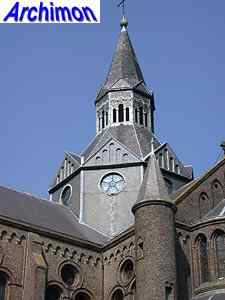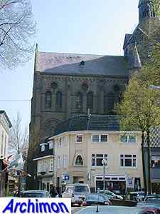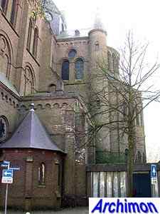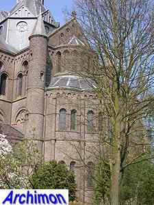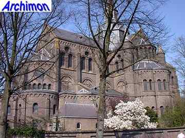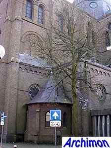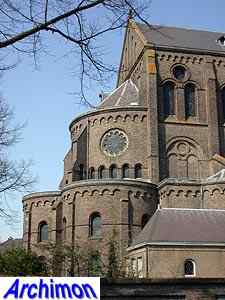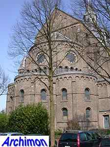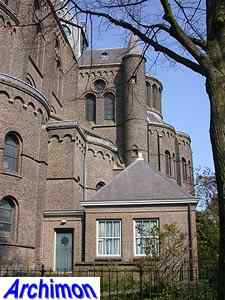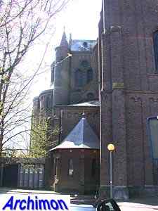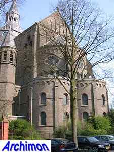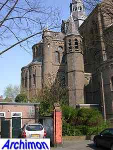 This is a three-aisled cruciform basilican church with an octagonal crossing-tower and a cloverleaf-shaped eastern part. Choir and transept-arms have apses with ambulatories, the transepts are flanked by stair-turrets. The crossing-tower, which already shows similarities with the domes on Weber's later churches, was intended to be built in brick but was constructed out of wood and lead instead. The construction of this church was hindered by many problems. The biggest disaster happened on December the 5th 1882, when the northern transept collapsed, killing ten workers. In 2005 the church was closed for safety reasons. Although the 's-Hertogenbosch diocese tried to get the church demolished for financial reasons, eventually it agreed to cooperate in giving the church a new, cultural function. |
