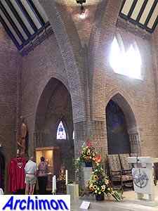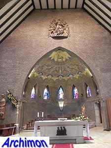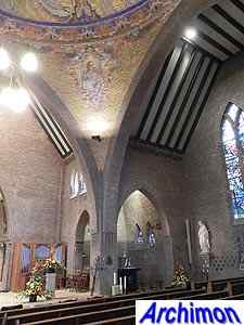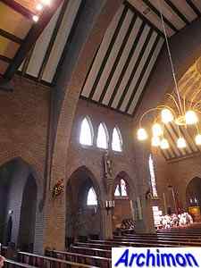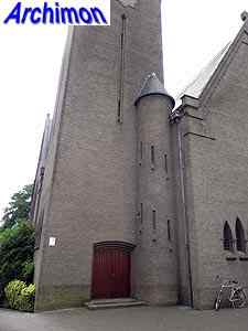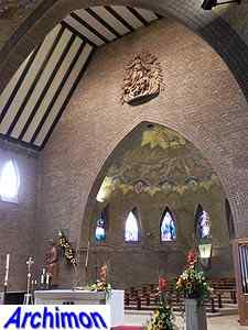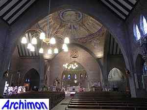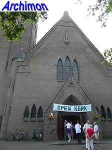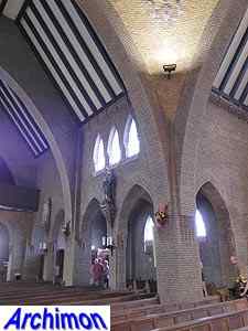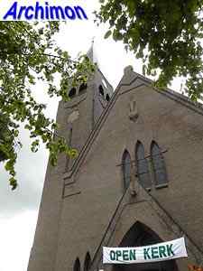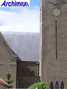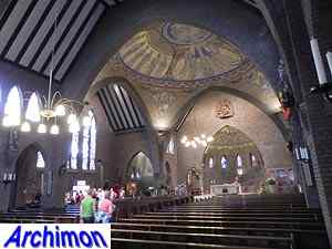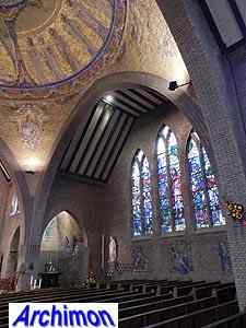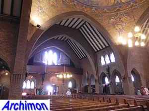 Expressionistic style with neo-Gothic details. The church has a
