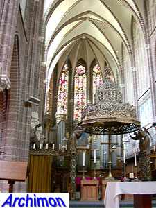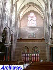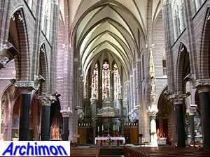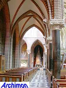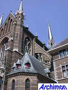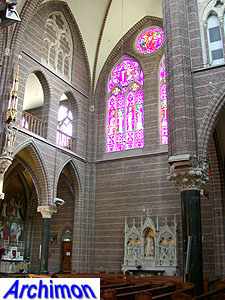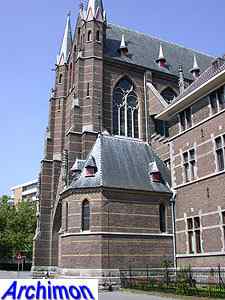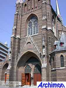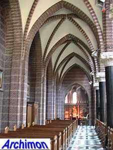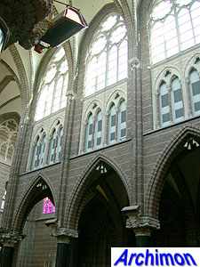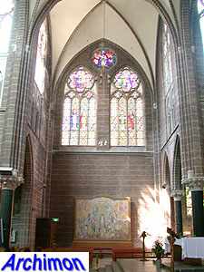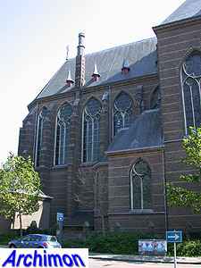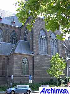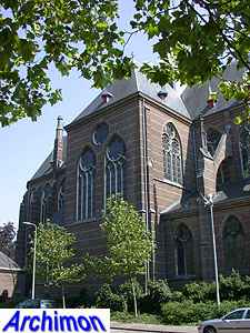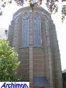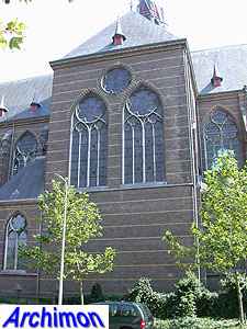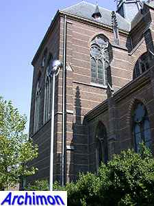 ![]() Zwolle (Ov): Dominican church (J. Kayser, 1899-1901) ![]() In 1580 the protestants closed the Dominican monastery of Zwolle. In 1890 the order finaly returned and built a new monastery just outside the old town. The new complex was designed by J. Kayser in conjunction with German architect C.C. Pickel and included this church, the first stone for which was laid in 1900. Like the rest of the monastery, the church is in neo-Gothic style. Although Kayser for many of his churches used a neo-Gothic style that was inspired by brick Gothic architecture in Northern Germany, this church is much closer to classic French Gothicism. It is not known what Pickel's contribution to the design was. It's a three-aisled cruciform basilica with a long choir. Instead of a real tower, which are traditionally absent at Dominican churches, it has a tall steeple on the crossing.