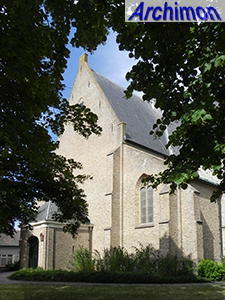 is an aisleless church in an Eclectic style, designed by architect A. le Clercq